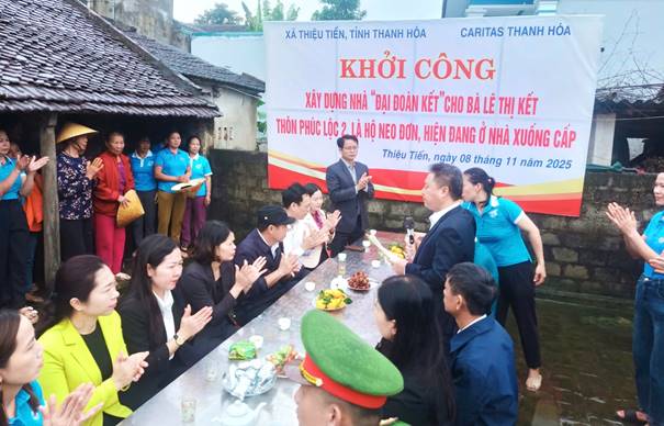 Thực hiện Chỉ thị số 22-CT/TU ngày 30/3/2024 của Ban Thường vụ Tỉnh ủy về Cuộc vận động hỗ trợ xây dựng nhà ở cho hộ nghèo, hộ gia đình chính sách, hộ còn khó khăn về nhà ở trên địa bàn tỉnh trong giai đoạn 2024 - 2025, sáng ngày 08/11, Xã Thiệu Tiến phối hợp với Uỷ ban bác ái xã hội Thanh Hóa tổ chức khởi công xây dựng Nhà “Đại đoàn kết” năm 2025 cho gia đình bà Lê Thị Kết, thôn Phúc Lộc 2, xã Thiệu Tiến.